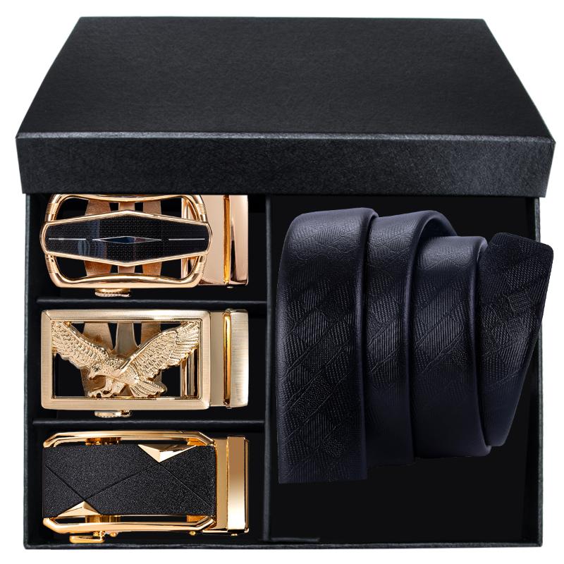 Ceintures Hi-Tie Boxed Hommes Cuir Noir Hommes Ceinture 3 Metal Automatique Buckles 1 Sangles à cliquet pour robe Jeans Dad Son cadeau de luxe