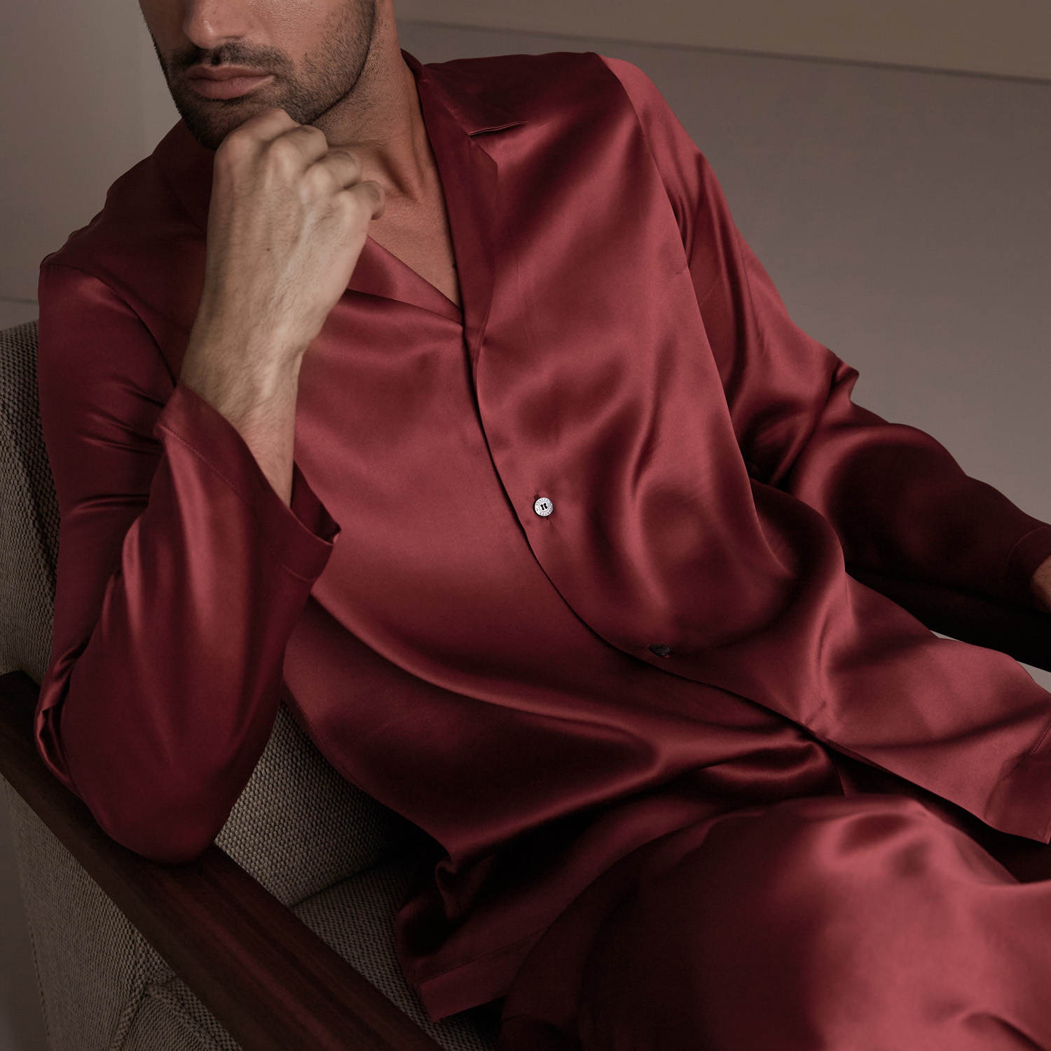 Frette Men's Sanctuary Si k Pyjama - Men in Burgundy Size L, Silk | Made in Italy